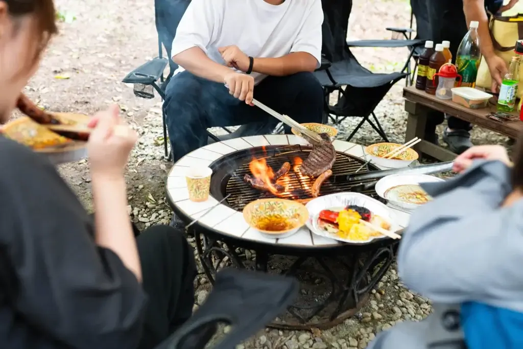 BBQコンロや調理器具、食器類はすべて現地に完備。お好きな食材と燃料(薪・炭)を持ち込むだけで、到着後すぐに本格的な炭火BBQがスタートできます。全棟に屋根付きのBBQスペースを備えているため、山の天気が変わりやすい日や雨天時でも安心。快適な環境でアウトドア料理をお楽しみください。