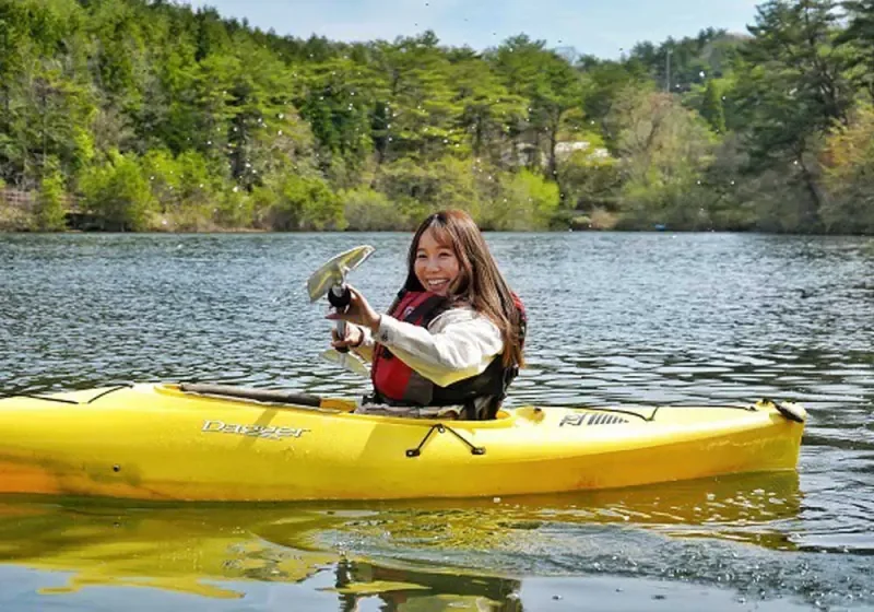 保古グランピングの大きな魅力のひとつが、穏やかな保古の湖を舞台にした多彩なアクティビティです。カヌーやSUP(サップ)は初心者でも安心して楽しめる体験で、湖面を滑るように進みながら根の上高原の雄大な景色を全身で感じられます。