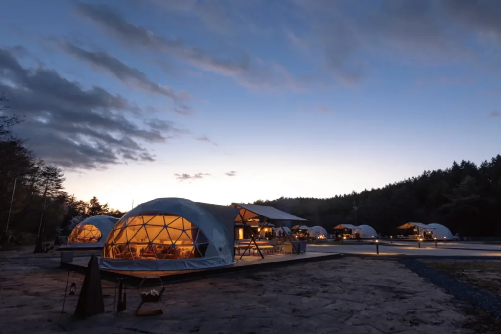 標高900mの澄み切った高原の空気の中、日中はきらめく湖面と緑豊かな山並みの絶景を眺め、夜は光害のない暗闇に広がる降るような星空の下で静けさを味わう。東海エリアにいながら、これほど本格的な大自然を感じられるグランピングはそう多くありません。